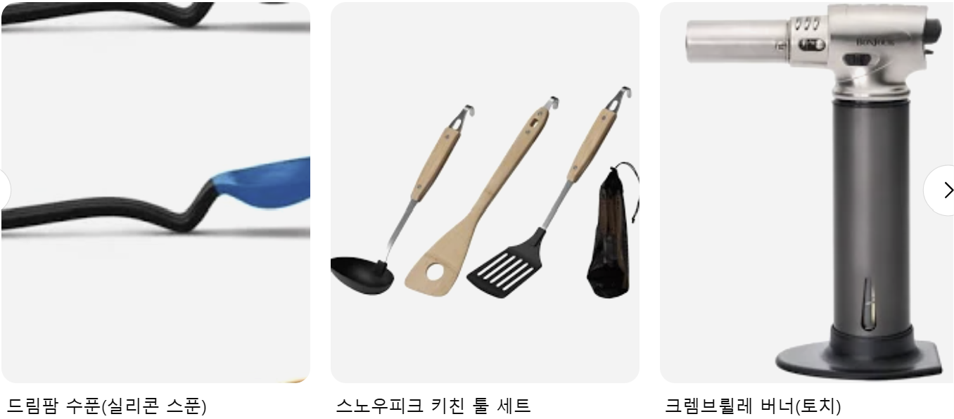 | 실리콘 스푼/스패튤라 | 멀티 유즈, 팬 보호 | 내열 200℃+, 세워두기 가능 | 볶음·스크래핑 |